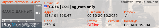 GGFD|CS:S|ag_rats only представлен в виде сервера ксс. Из всех имеющихся на сайте модификаций игровых серверов, вам может понравиться DeathRun серверы css. А для быстрой навигации по всем меткам - используйте главную страницу игры Counter Strike Source.