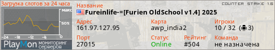 Fureinlife-=[Furien OldSchool v1.4] 2025 представлен в виде сервера кс 1.6. Из всех имеющихся на сайте модификаций игровых серверов, наша система поставила метку Furien Mod сервера cs. В нашем мониторинге игровых серверов вы так же можете найти быструю навигацию по всем меткам - используйте главную страницу игры Counter Strike 1.6.