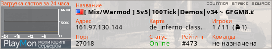 [ Mix/Warmod ] 5v5|100Tick|Demos|v34 ~ GFGM8.# представлен в виде сервера ксс. Из всех имеющихся на сайте модификаций игровых серверов, вам может понравиться GunGame серверы css. А для быстрой навигации по всем меткам - используйте главную страницу игры Counter Strike Source.