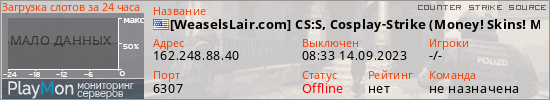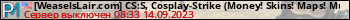 [WeaselsLair.com] CS:S, Cosplay-Strike (Money! Skins! Maps! Mus представлен в виде сервера ксс. Из всех имеющихся на сайте модификаций игровых серверов, вам может понравиться GunGame серверы css. А для быстрой навигации по всем меткам - используйте главную страницу игры Counter Strike Source.