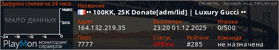 ID: 72165Ссылка: https://playmon.ru/server/164.132.219.35:7777
