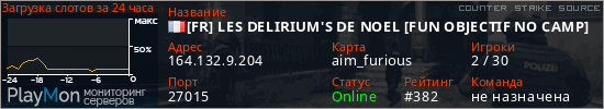 [FR] LES DELIRIUM'S [FUN OBJECTIF NO CAMP] представлен в виде сервера ксс. Из всех имеющихся на сайте модификаций игровых серверов, вам может понравиться Zombie серверы css. А для быстрой навигации по всем меткам - используйте главную страницу игры Counter Strike Source.