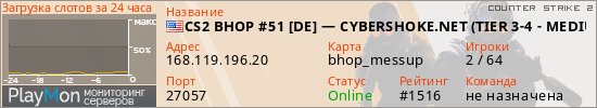 CS2 BHOP #51 [DE] — CYBERSHOKE.NET (TIER 3-4 - MEDIUM) представлен в виде сервера кс 2. Из всех имеющихся на сайте модификаций игровых серверов, вам может понравиться DeathRun серверы cs2. А для быстрой навигации по всем меткам - используйте главную страницу игры Counter Strike 2.