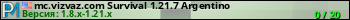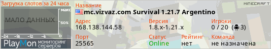 Общая информация ID: 55993 Ссылка: https://playmon.ru/server/168.138.144.58:25565 Версия: 1.8.x-1.21.x Адрес: 168.138.144.58:25565 Игроки: 0/20 Боты: 3 Статус: Включен Владелец: Не определён