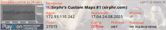 Общая информация ID: 67507 Ссылка: https://playmon.ru/server/172.93.110.242:27015 Адрес: 172.93.110.242:27015 Игроки: 0/4 Статус: Выключен Владелец: Не определён