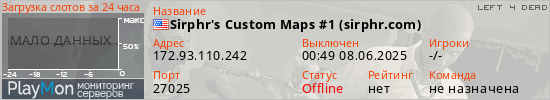 Общая информация ID: 66971 Ссылка: https://playmon.ru/server/172.93.110.242:27025 Адрес: 172.93.110.242:27025 Игроки: 0/4 Статус: Выключен Владелец: Не определён
