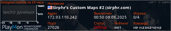 Общая информация ID: 66978 Ссылка: https://playmon.ru/server/172.93.110.242:27026 Адрес: 172.93.110.242:27026 Игроки: 0/4 Статус: Выключен Владелец: Не определён