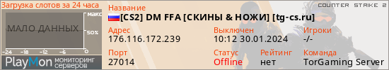 [CS2] DM FFA [СКИНЫ & НОЖИ] [tg-cs.ru] представлен в виде сервера кс 2. Из всех имеющихся на сайте модификаций игровых серверов, наша система поставила метку DeathMatch сервера cs2. В нашем мониторинге игровых серверов вы так же можете найти где поиграть на FFA сервере кс 2.