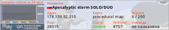 ID: 82713Ссылка: https://playmon.ru/server/178.159.92.210:28015