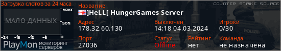 ]HeLL[ HungerGames Server представлен в виде сервера ксс. Из всех имеющихся на сайте модификаций игровых серверов, вам может понравиться GunGame серверы css. А для быстрой навигации по всем меткам - используйте главную страницу игры Counter Strike Source.