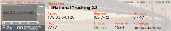 ID: 65566Ссылка: https://playmon.ru/server/178.33.64.126:7777