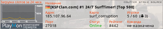 [KSFClan.com] #1 24/7 SurfTimer! [Top 500] представлен в виде сервера ксс. Из всех имеющихся на сайте модификаций игровых серверов, наша система поставила метку Surf сервера css. В нашем мониторинге игровых серверов вы так же можете найти быструю навигацию по всем меткам - используйте главную страницу игры Counter Strike Source.