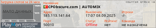CPObscure.com | AUTOMIX представлен в виде сервера кс 1.6. Из всех имеющихся на сайте модификаций игровых серверов, вам может понравиться Knife серверы cs. А для быстрой навигации по всем меткам - используйте главную страницу игры Counter Strike 1.6.