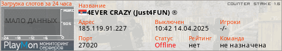 4EVER CRAZY (Just4FUN) ® представлен в виде сервера кс 1.6. Из всех имеющихся на сайте модификаций игровых серверов, вам может понравиться Knife серверы cs. А для быстрой навигации по всем меткам - используйте главную страницу игры Counter Strike 1.6.