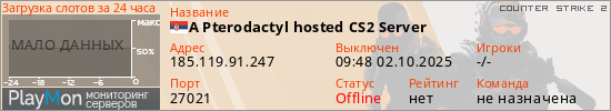 A Pterodactyl hosted CS2 Server представлен в виде сервера кс 2. Из всех имеющихся на сайте модификаций игровых серверов, вам может понравиться Knife серверы cs2. А для быстрой навигации по всем меткам - используйте главную страницу игры Counter Strike 2.