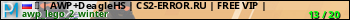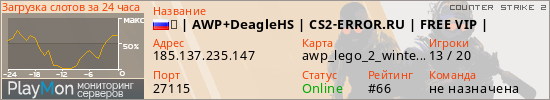➥ | AWP+DeagleHS | CS2-ERROR.RU | FREE VIP | представлен в виде сервера кс 2. Из всех имеющихся на сайте модификаций игровых серверов, наша система поставила метку AWP сервера cs2. В нашем мониторинге игровых серверов вы так же можете найти быструю навигацию по всем меткам - используйте главную страницу игры Counter Strike 2.