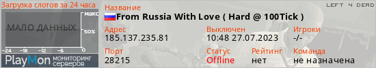 Общая информация ID: 47480 Ссылка: https://playmon.ru/server/185.137.235.81:28215 Адрес: 185.137.235.81:28215 Игроки: 0/4 Статус: Выключен Владелец: Не определён
