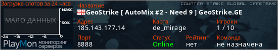 GeoStrike [ AutoMix #2 - Need 9 ] GeoStrike.GE представлен в виде сервера кс го. Из всех имеющихся на сайте модификаций игровых серверов, вам может понравиться Knife серверы csgo. А для быстрой навигации по всем меткам - используйте главную страницу игры Counter Strike Global Offensive.