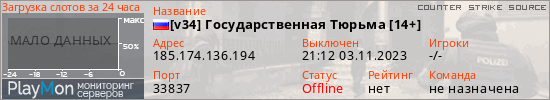 [v34] Государственная Тюрьма [14+] представлен в виде сервера ксс. Из всех имеющихся на сайте модификаций игровых серверов, вам может понравиться DeathRun серверы css. А для быстрой навигации по всем меткам - используйте главную страницу игры Counter Strike Source.