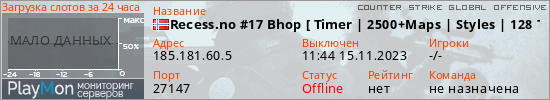 Recess.no #17 Bhop [ Timer | 2500+Maps | Styles | 128 Tick ] представлен в виде сервера кс го. Из всех имеющихся на сайте модификаций игровых серверов, вам может понравиться Knife серверы csgo. А для быстрой навигации по всем меткам - используйте главную страницу игры Counter Strike Global Offensive.