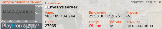 mosh's server представлен в виде сервера кс 1.6. Из всех имеющихся на сайте модификаций игровых серверов, вам может понравиться Knife серверы cs. А для быстрой навигации по всем меткам - используйте главную страницу игры Counter Strike 1.6.