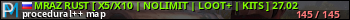 MRAZ RUST [ X5/X10 | NOLIMIT | LOOT+ | KITS ] 27.02 представлен в виде