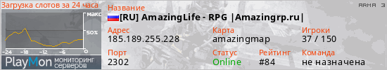 [RU] AmazingLife - RPG |Amazingrp.ru| представлен в виде сервера арма 3. Из всех имеющихся на сайте модификаций игровых серверов, вам может понравиться DayZ серверы arma3. А для быстрой навигации по всем меткам - используйте главную страницу игры ARMA 3.