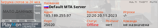Общая информация ID: 61543 Ссылка: https://playmon.ru/server/185.189.255.97:25020 Версия: 1.6 Адрес: 185.189.255.97:25020 Игроки: 0/45 Статус: Выключен Владелец: Не определён