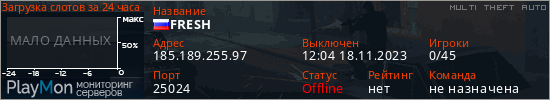 Общая информация ID: 61533 Ссылка: https://playmon.ru/server/185.189.255.97:25024 Версия: 1.6 Адрес: 185.189.255.97:25024 Игроки: 0/45 Статус: Выключен Владелец: Не определён