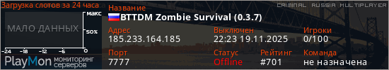 ID: 72805Ссылка: https://playmon.ru/server/185.233.164.185:7777