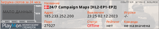 24/7 Campaign Maps [HL2-EP1-EP2] представлен в виде сервера ксс. Из всех имеющихся на сайте модификаций игровых серверов, вам может понравиться AWP серверы css. А для быстрой навигации по всем меткам - используйте главную страницу игры Counter Strike Source.