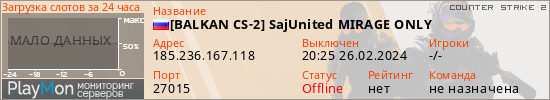 [BALKAN CS-2] SajUnited MIRAGE ONLY представлен в виде сервера кс 2. Из всех имеющихся на сайте модификаций игровых серверов, вам может понравиться DeathRun серверы cs2. А для быстрой навигации по всем меткам - используйте главную страницу игры Counter Strike 2.