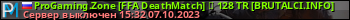 ProGaming.Zone [FFA DeathMatch] ★ 128 TR [BRUTALCI.INFO] представлен в виде сервера кс го. Из всех имеющихся на сайте модификаций игровых серверов, наша система поставила метку DeathMatch сервера csgo. В нашем мониторинге игровых серверов вы так же можете найти где поиграть на FFA сервере кс го.