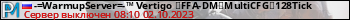 -=WarmupServer=-™ Vertigo ★FFA-DM★MultiCFG★128Tick представлен в виде сервера кс го. Из всех имеющихся на сайте модификаций игровых серверов, наша система поставила метку DeathMatch сервера csgo. В нашем мониторинге игровых серверов вы так же можете найти где поиграть на FFA сервере кс го.
