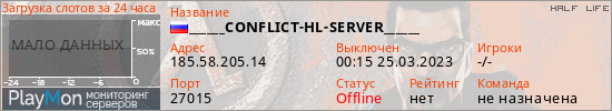 Общая информация ID: 53171 Ссылка: https://playmon.ru/server/185.58.205.14:27015 Адрес: 185.58.205.14:27015 Игроки: 0/32 Статус: Выключен Владелец: Не определён