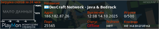 Общая информация ID: 56999 Ссылка: https://playmon.ru/server/186.182.87.26:25565 Версия: 1.7.2-1.21.10 Адрес: 186.182.87.26:25565 Игроки: 0/500 Статус: Выключен Владелец: Не определён