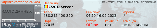 Общая информация ID: 51246 Ссылка: https://playmon.ru/server/188.212.100.250:27015 Адрес: 188.212.100.250:27015 Игроки: 0/14 Статус: Выключен Владелец: Не определён