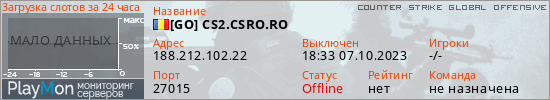 Общая информация ID: 53597 Ссылка: https://playmon.ru/server/188.212.102.22:27015 Адрес: 188.212.102.22:27015 Игроки: 0/32 Статус: Выключен Владелец: Не определён