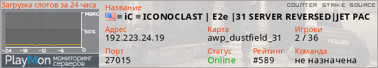 ≡ iC ≡ ICONOCLAST | E2e |31 SERVER REVERSED|JET PACK/SUPER представлен в виде сервера ксс. Из всех имеющихся на сайте модификаций игровых серверов, вам может понравиться DeathMatch серверы css. А для быстрой навигации по всем меткам - используйте главную страницу игры Counter Strike Source.