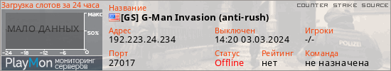 [GS] G-Man Invasion (anti-rush) представлен в виде сервера ксс. Из всех имеющихся на сайте модификаций игровых серверов, вам может понравиться DeathMatch серверы css. А для быстрой навигации по всем меткам - используйте главную страницу игры Counter Strike Source.