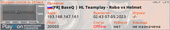 Общая информация ID: 54042 Ссылка: https://playmon.ru/server/193.168.147.161:20003 Адрес: 193.168.147.161:20003 Игроки: 0/24 Статус: Выключен Владелец: Не определён