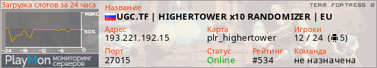 UGC.TF | HIGHERTOWER x10 RANDOMIZER | EU представлен в виде сервера тф2. Из всех имеющихся на сайте модификаций игровых серверов, вам может понравиться JailBreak серверы tf2. А для быстрой навигации по всем меткам - используйте главную страницу игры Team Fortress 2.
