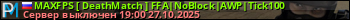 MAXFPS [ DeathMatch ] FFA|NoBlock|AWP|Tick100 представлен в виде сервера ксс. Из всех имеющихся на сайте модификаций игровых серверов, наша система поставила метку DeathMatch сервера css. В нашем мониторинге игровых серверов вы так же можете найти где поиграть на AWP сервере ксс.