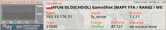 [4FUN OLDSCHOOL] GameShot [MAPY FFA / RANGI / MEDALE / ASYSTY / MONETY / SKLEP ZA MONETY / VIP STEAM] @pukawka.pl представлен в виде сервера кс 1.6. Из всех имеющихся на сайте модификаций игровых серверов, вам может понравиться DeathRun серверы cs. А для быстрой навигации по всем меткам - используйте главную страницу игры Counter Strike 1.6.