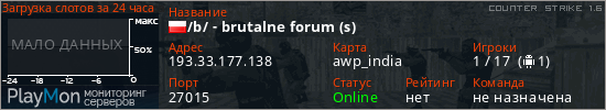 /b/ - brutalne forum (s) представлен в виде сервера кс 1.6. Из всех имеющихся на сайте модификаций игровых серверов, вам может понравиться DeathRun серверы cs. А для быстрой навигации по всем меткам - используйте главную страницу игры Counter Strike 1.6.