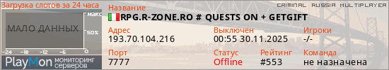 ID: 72825Ссылка: https://playmon.ru/server/193.70.104.216:7777