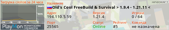 ID: 70767Ссылка: https://playmon.ru/server/194.110.5.59:25565