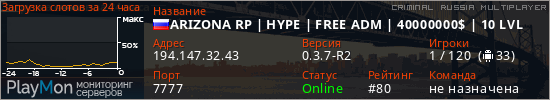 ID: 72114Ссылка: https://playmon.ru/server/194.147.32.43:7777