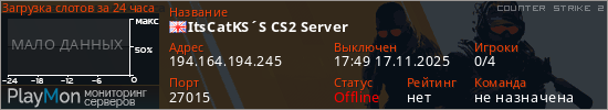 ItsCatKS´S CS2 Server представлен в виде сервера кс 2. Из всех имеющихся на сайте модификаций игровых серверов, вам может понравиться Knife серверы cs2. А для быстрой навигации по всем меткам - используйте главную страницу игры Counter Strike 2.