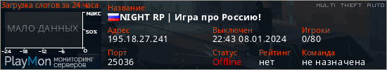 Общая информация ID: 61518 Ссылка: https://playmon.ru/server/195.18.27.241:25036 Версия: 1.5n Адрес: 195.18.27.241:25036 Игроки: 0/80 Статус: Выключен Владелец: Не определён